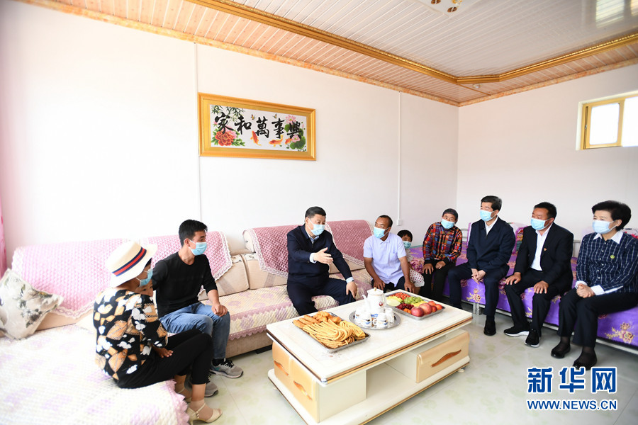 6月8日至10日,中共中央總書記、國家主席、中央軍委主席習近平在寧夏考察。這是6月8日下午,習近平在吳忠市紅寺堡區紅寺堡鎮弘德村看望移民搬遷群眾,向村民們揮手致意。 新華社記者 謝環馳 攝 新華社銀川6月10日電 中共中央總書記、國家主席、中央軍委主席習近平近日在寧夏考察時強調,要全面落實黨中央決策部署,堅持穩中求進工作總基調,堅持新發展理念,落實全國“兩會”工作部署,堅決打好三大攻堅戰,扎實做好“六穩”工作,全面落實“六保”任務,努力克服新冠肺炎疫情帶來的不利影響,優先穩就業保民生,決勝全面建成小康社會,決戰脫貧攻堅,繼續建設經濟繁榮、民族團結、環境優美、人民富裕的美麗新寧夏。 夏日炎炎,塞上江南天高云淡,草木蔥蘢。6月8日至10日,習近平在寧夏回族自治區黨委書記陳潤兒、自治區政府主席咸輝陪同下,先后來到吳忠、銀川等地,深入農村、社區、防洪工程、農業產業園區等,就統籌推進常態化疫情防控和經濟社會發展工作、鞏固脫貧攻堅成果、加強生態環境保護、推動民族團結進步進行調研。 6月8日至10日,中共中央總書記、國家主席、中央軍委主席習近平在寧夏考察。這是6月8日下午,習近平在吳忠市紅寺堡區紅寺堡鎮弘德村扶貧車間,同正在加工制作紙箱的村民交流。 新華社記者 鞠鵬 攝 吳忠市紅寺堡區紅寺堡鎮弘德村是生態移民村,有建檔立卡貧困戶1036戶4497人,目前還有20戶50人未脫貧。8日下午,習近平首先來到弘德村考察脫貧攻堅工作。在村扶貧車間院內,他聽取了寧夏以及弘德村脫貧攻堅情況介紹。走進扶貧車間,習近平同正在加工制作紙箱的村民們親切交流。鄉親們告訴總書記,村里引入企業從事紙箱包裝業務,解決了一百多人就業問題。習近平表示肯定。他指出,興辦扶貧車間目的是扶貧,要堅持扶貧性質,向困難群眾傾斜,多招收困難群眾就業。鄉親們在家門口就業,雖然收入不比進城務工高,但省去了住宿、伙食、交通等費用,還能照顧家庭,一舉多得。企業參與興辦扶貧車間,體現了先富帶后富,很有意義。 6月8日至10日,中共中央總書記、國家主席、中央軍委主席習近平在寧夏考察。這是6月8日下午,習近平在吳忠市紅寺堡區紅寺堡鎮弘德村察看回族村民劉克瑞家院落。 新華社記者 謝環馳 攝 隨后,習近平步行察看村容村貌。在回族村民劉克瑞家,他仔細看院落、客廳、臥室、廚房、牛棚,詳細了解家庭就業、收入、看病、社保等情況。劉克瑞告訴總書記,家里的耕地流轉了,還養了3頭肉牛,兒子兒媳在附近紡織廠打工,2017年全家脫貧,生活越來越好,鄉親們打心底里感到黨的政策好,真切感受到共產黨親。習近平詢問劉克瑞老兩口還有什么困難、對今后的日子有什么打算。習近平強調,鄉親們搬遷后,更好生活還在后頭。希望鄉親們百尺竿頭、更進一步,發揮自身積極性、主動性、創造性,用自己的雙手創造更加美好的新生活。 6月8日至10日,中共中央總書記、國家主席、中央軍委主席習近平在寧夏考察。這是6月8日下午,習近平在吳忠市紅寺堡區紅寺堡鎮弘德村,同回族村民劉克瑞一家親切交流。 新華社記者 謝環馳 攝 離開村子時,村民們紛紛趕到村口,歡送總書記。習近平向大家揮手致意,祝愿鄉親們生活幸福。 6月8日至10日,中共中央總書記、國家主席、中央軍委主席習近平在寧夏考察。這是6月8日下午,習近平在黃河吳忠濱河大道古城灣砌護段,察看黃河生態治理保護狀況。 新華社記者 鞠鵬 攝 習近平高度重視黃河流域生態保護和高質量發展。他來到黃河吳忠濱河大道古城灣砌護段,沿岸邊步道,察看黃河生態治理保護狀況,聽取黃河寧夏段生態保護治理和水利工程建設情況匯報。習近平指出,黃河是中華民族的母親河,是中華民族和中華文明賴以生存發展的寶貴資源。自古以來,黃河水滋養著寧夏這片美麗富饒的土地,今天仍在造福寧夏各族人民。寧夏要有大局觀念和責任擔當,更加珍惜黃河,精心呵護黃河,堅持綜合治理、系統治理、源頭治理,明確黃河保護紅線底線,統籌推進堤防建設、河道整治、灘區治理、生態修復等重大工程,守好改善生態環境生命線。 6月8日至10日,中共中央總書記、國家主席、中央軍委主席習近平在寧夏考察。這是6月8日下午,習近平在吳忠市利通區金花園社區黨群活動服務中心,同社區志愿者代表親切交談。 新華社記者 鞠鵬 攝 6月8日至10日,中共中央總書記、國家主席、中央軍委主席習近平在寧夏考察。這是6月8日下午,習近平在吳忠市利通區金花園社區考察民族團結社區創建工作情況。 新華社記者 謝環馳 攝 6月8日至10日,中共中央總書記、國家主席、中央軍委主席習近平在寧夏考察。這是6月8日下午,習近平在吳忠市利通區金花園社區廣場,同居民們親切交流。 新華社記者 燕雁 攝 傍晚時分,習近平前往吳忠市利通區金花園社區。社區常住居民13850人,漢、回、滿、蒙、藏等各族群眾和睦相處,曾榮獲“全國民族團結進步模范集體”稱號。習近平來到社區黨群活動服務中心,了解社區黨建工作、民族團結社區創建和為民服務工作情況,同社區志愿者代表親切交談。社區廣場十分熱鬧,正在休閑娛樂的居民看見總書記來了,圍攏過來,熱烈鼓掌。習近平深情對大家說,中華民族是多元一體的偉大民族。全面建成小康社會,一個少數民族也不能少。各民族團結攜
