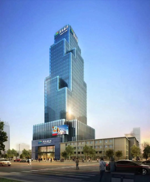 河北銀行股份有限公司新辦公樓建筑物位于石家莊市長安區建設南大街21號,占地面積10408平方米,建筑面積110453.13平方米,總高度166.8 米。方案在設計過程中充分考慮到設計需求,在遵循節源開流原則、現代辦公原則、以人為本原則、綠色環保原則的基礎上營造簡潔大方、安全實用、綠色環保、科技敏捷的現代辦公氛圍。
