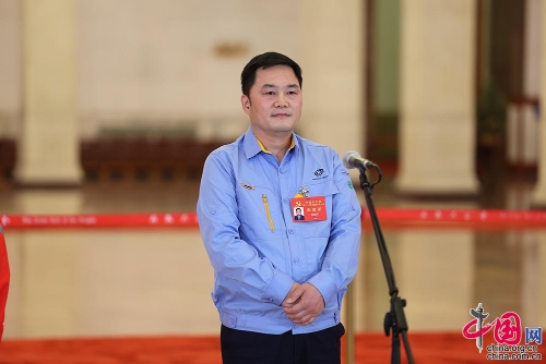 10月22日,二十大“黨代表通道”第二場采訪活動在人民大會堂舉辦。圖為中國兵器西北工業集團研究院試制分廠鉗工高級技師張新停。中國網記者 董寧 攝