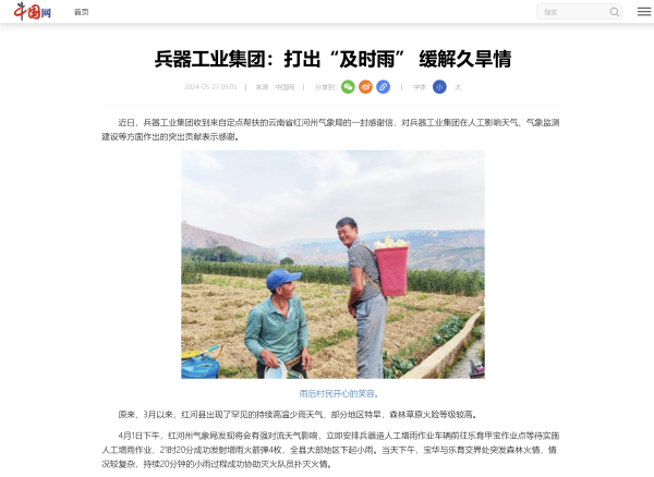 中國網(wǎng)報道兵器工業(yè)集團助力云南省紅河州氣象保障 |